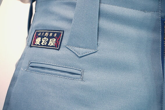 上下セットはこちら ネーム刺繍はこちら【日本製 鳶装束 数量限定品】 愛宕屋 ブランド 細身江戸前超ロング サージ ブルー スマート&スタイリッシュな鳶装束を着こなしたい職人達が身に纏う逸品。