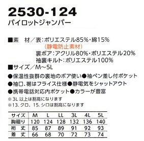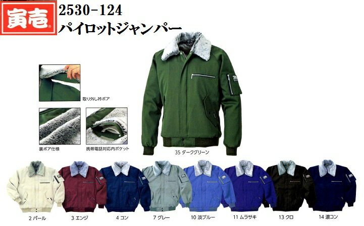 【防寒.寅壱】2530-124寅壱パイロットジャンパーM.L.LL.3Lブラックポリエステル85綿15% 安い防寒作業服・作業着